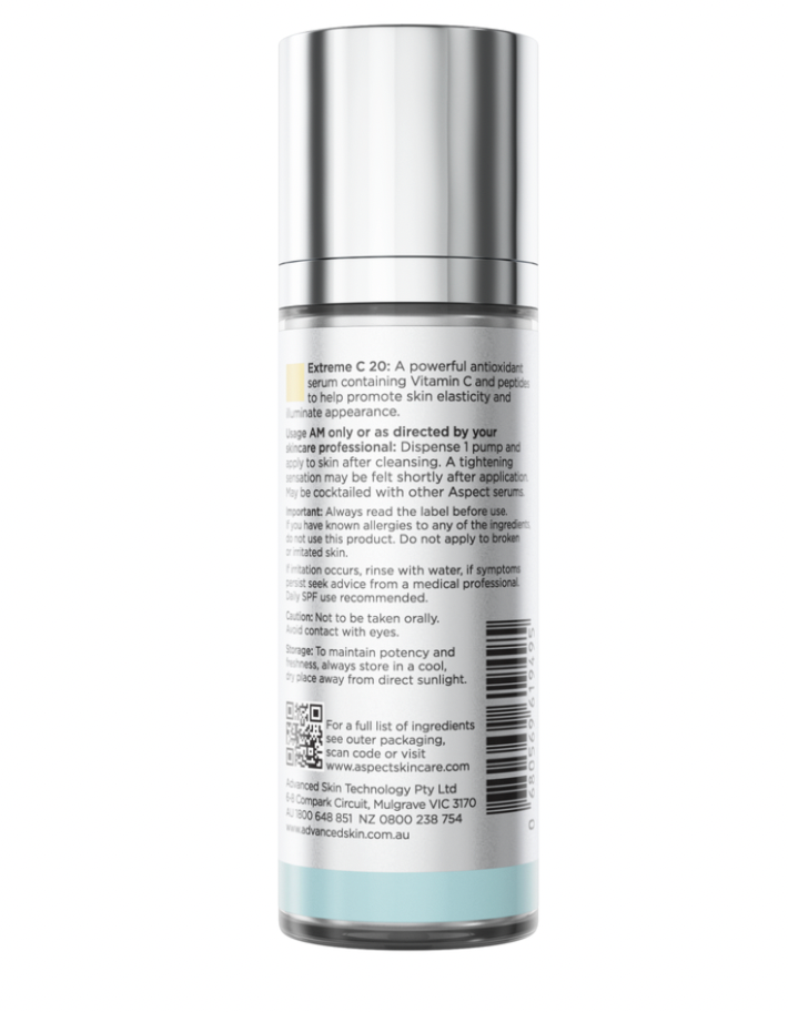Our Extreme C 20 is no ordinary vitamin C formula. In combination with powerful peptides, it promises skin revival. This potent formula helps to preserve existing collagen. A remarkable serum that addresses multiple signs of ageing for visibly firmer, vibrant skin.